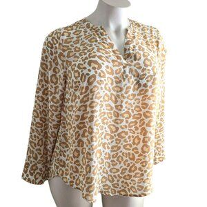 Torrid Womens Leopard Print Blouse Size 1 Tan & White V-Neck Long Sleeve JJ3876