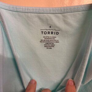 This light blue tank top by Torrid offers comfort and style with adjustable straps for a perfect fit. Crafted from a cotton/spandex blend, it ensures breathability and flexibility, ideal for casual outings.
