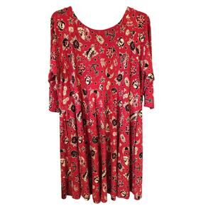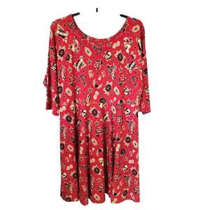 Torrid Womens Mermaid Tattoo Dress Plus Size 3X Red Goth Skull Roses Halloween