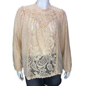Torrid Womens Mixed Lace High Neck Top Beige Long Sleeve Plus Size 4 | 4X