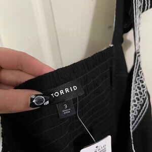 Torrid Womens NWT Black Babydoll Crinkle Gauze Embroidered Tiered Top Blouse 3X. Crinkle Gauze woven fabric: Lightweight, textured, breathable and still totally opaque. Stretch level: Minimum. 100% rayon. Sweetheart neckline. Straps with ruffle detail. Sleeveless. Embroidery. Measurements Underarm to underarm: 24" Length: 34" Offers always welcome! Measurements are approximations taken while hanging