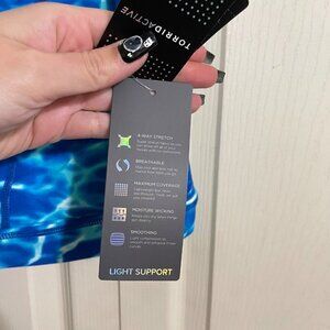 Torrid Womens NWT Blue Water Low-Impact Wireless Zip-Front Active Sports Bra 2X. Performance Core knit fabric: Our signature fabric smooths, lifts and supports whether you're working out or hanging out. Stretch level: Maximum 4-way stretch so you can move without restrictions. Breathable to keep you cool. Maximum coverage and never see-through. Moisture wicking keeps you dry. Smoothing tech delivers light compression. 83% nylon, 17% spandex. Hand wash cold. Line dry. Zip front, Criss cross back. Water pool waves print. Offers always welcome!