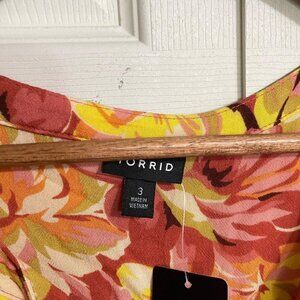 Torrid Womens NWT Tie Neck Vneck Gauze Floral Burnt Orange Peasant Blouse 3X. Gauze woven fabric: A subtly sheer, lightweight, breathable and soft fabric that belongs in your closet ASAP. Stretch level: Minimum. 100% rayon. Dry clean only. V-neck. Tulip sleeves. Floral print. Shirttail hem. Measurements Shoulder to shoulder: 16" Underarm to underarm: 27" Length: 29" Sleeve: 8" Offers always welcome! Measurements are approximations taken while hanging