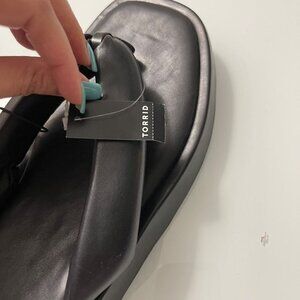 Torrid Womens NWT Faux Leather Black Y2K Chucky Padded Platform Sandals Size 9.5. Extra wide width (WW): Our unique fit gives you extra wide width and extra room around your whole foot. Extra cushioned footbed. 1.5" heel. Man-made materials, rubber sole. 100% polyurethane. Thong toe. Offers always welcome!