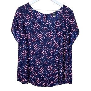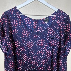 Torrid Womens Navy Blue Heart Print Crepe Button Back Blouse Plus Size 2X
