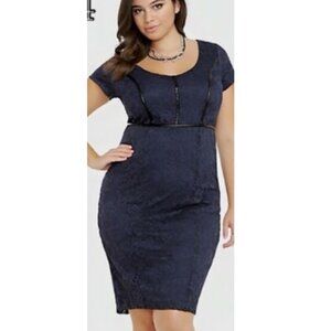 Torrid Women's Navy Faux Leather Edging Lace Bodycon Mini Dress Size 18