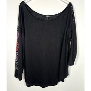 Torrid Women's Off Shoulder Top Shirt 3X Black Skull Long Sleeve Punk Goth