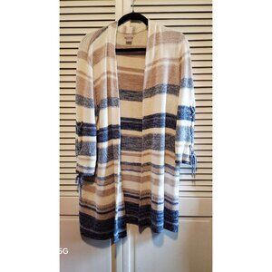 Torrid Womens Open Front Striped Cardigan Sweater Size 1 Ivory Brown Burgundy Co