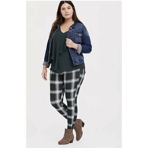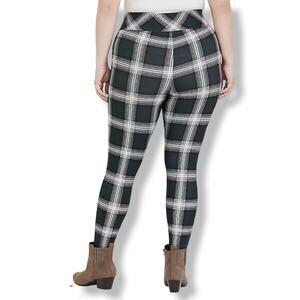 Torrid Womens Pants 00 10 Studio Premium Ponte Slim Fix Pixie Dark Green Plaid NEW
