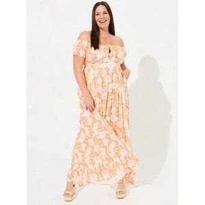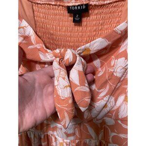 Torrid Women's Peach Plus Size Maxi Gauze Off Shoulder Tie Front Dress Size 2x