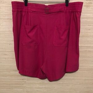 Torrid Women's Pink Wide Leg Studio Crepe Shorts size 22- Pleaded, wide leg detail- Functional side and back slip pockets- Elastic back with adjustable buckle detail- Hook and zipper fly closure with inner button- EUC, like new