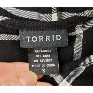 Torrid Womens Plaid Dolman Sleeve Top Size 3X Black Windowpane Office Everyday