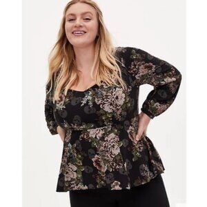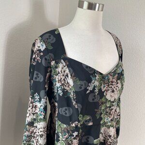 Torrid Womens Plus 1X Floral Skull Sweetheart Neck Peplum Blouse Shirt Top