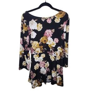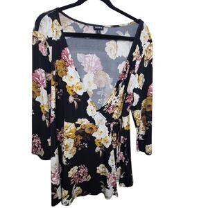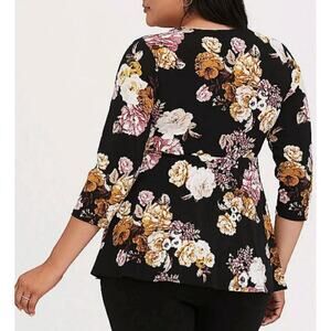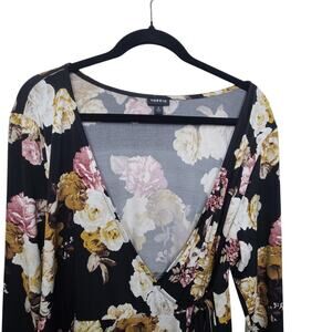 Torrid Womens Plus 2X 18/20 Black Floral Knit Wrap Peplum Top Shirt Fairy Grunge