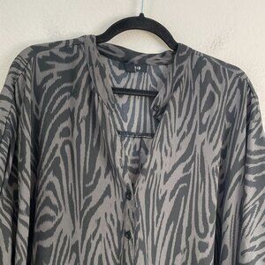 Torrid Womens Plus 2X Gray Black Zebra Print Button Up Blouse 3/4 Sleeve Shirt