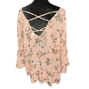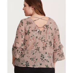 Torrid Women's Plus 3X Floral Print Chiffon Ruffle Bell Sleeve CrissCross Blouse