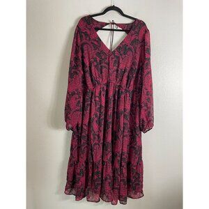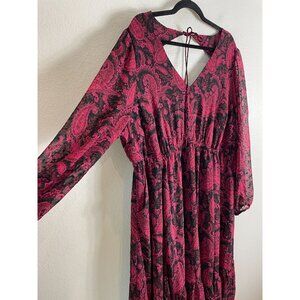 Torrid Womens Plus 3X Tea Length Paisley Open Back A Line Midi Dress Long Sleeve