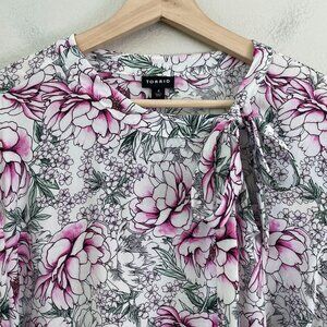 Torrid Womens Plus 4X Floral Long Sleeve Blouse Side Tie Neckline Shirt Top