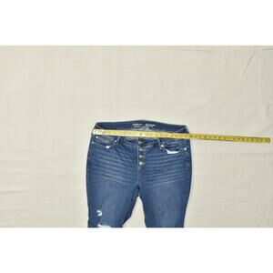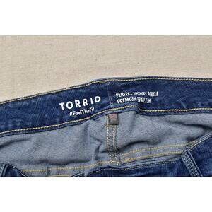 Step out in style with these Torrid Women's Plus Size 20S Ripped Distressed Skinny Ankle Jeans. Crafted from a premium stretch denim, these jeans offer a comfortable and flattering fit, perfect for everyday wear or a night out. The classic blue wash is enhanced with trendy ripped and distressed details on the front, adding a touch of edge to your look. Featuring a button-fly closure with multiple buttons, a mid-rise waist, and functional front and back pockets, these jeans are both fashionable and practical. The ankle length makes them ideal for showcasing your favorite footwear. Made with a blend of 66% cotton, 20% rayon, 12% polyester, and 2% spandex, they provide excellent flexibility and shape retention. These jeans are in good used condition with the distressed areas being a design feature. Please refer to the images for precise measurements to ensure the perfect fit. Embrace comfort and style with Torrid's signature 'Feel The Fit' design in these versatile skinny ankle jeans.
