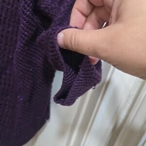Torrid women’s plus size 3 (fits 3X / 22–24) knit sweater in a gorgeous deep purple with subtle metallic thread shimmer. Features a V-neckline, mid-length sleeves, and a cozy open-knit cable design. Lightweight yet warm — perfect for layering in fall and winter.