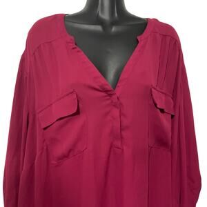 Torrid Womens Plus Size 4 or 26 Red Harper Georgette Pullover 3/4 Sleeve Tunic Blouse Top