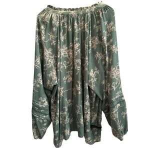 Torrid Women’s Plus Size 5X Green Floral Boho Peasant Blouse Long Sleeve