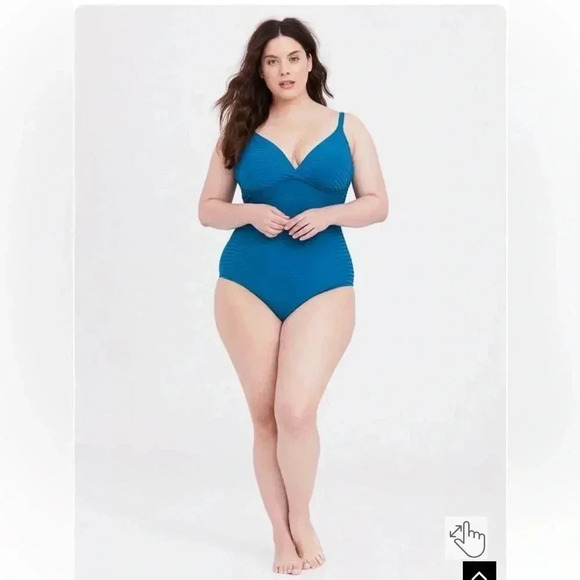 Torrid Womens Plus Size Blue Wireless Shadow Stripe One Piece Swimsuit 6X
