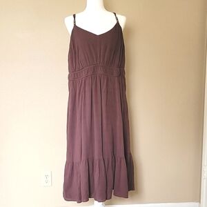 Torrid Womens Plus Size Brown Textured Cotton Tiered Midi Dress - Size 2X