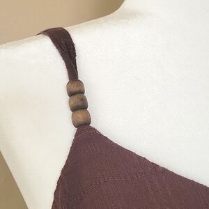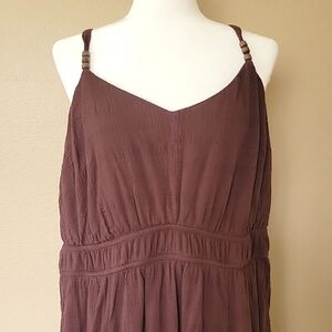 EUC Torrid brown neutral textured cotton midi dress with adjustable straps and beading on the staps. Dress has pockets on both sides