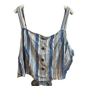 Brand new Torrid women's plus size blue striped linen blend button-front cropped tank top with adjustable straps - size 5/5X/28.