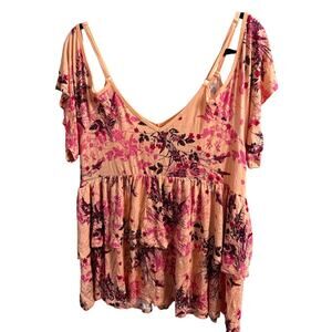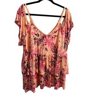 Torrid Women's Plus Size Peach Floral Tiered Cold Shoulder Babydoll Top Size 3 3X