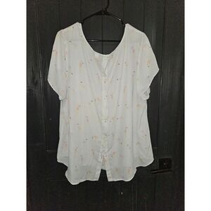 Torrid Women's Plus Size White Flamingo Print Button Back Short Sleeve Top