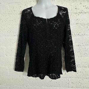 Torrid Womens Plus Top 1 (1X) Black Lace Long Sleeve Lace Scoop Neck AY12
