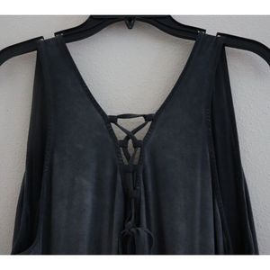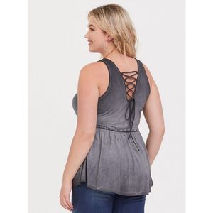 Torrid Women's Plus Sz 2 (2XL 18-20) Nine Iron Gray Lace-Up Babydoll Tank
