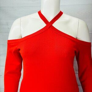 Torrid Womens Pullover Cross Neck Cold Shoulder Sweater Red Orange Plus Size 1X