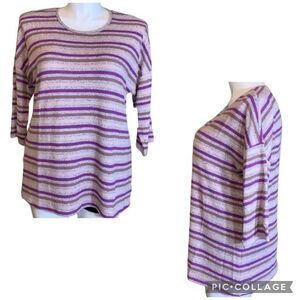 Striped Super Soft Plush 3/4 Sleeve Pullover Sweater Pink Torrid