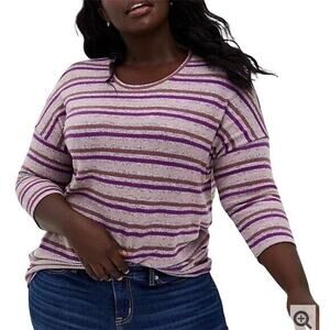 Pink Super Soft Plush 3/4 Sleeve Striped Pullover Sweater Torrid