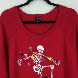 Torrid Womens Red Festive Christmas Skeleton Sweater sz 3 ( L)