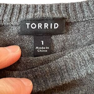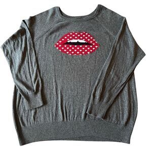 Torrid Womens Red Lips Heart Love Long Sleeve Knit Pullover Sweater Gray Size 1