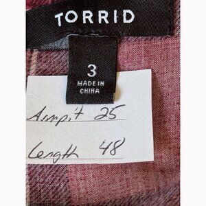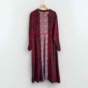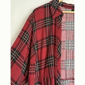 Torrid Womens Red Plaid Open Duster Longline 3X 90s Grunge Casual Chic Layering