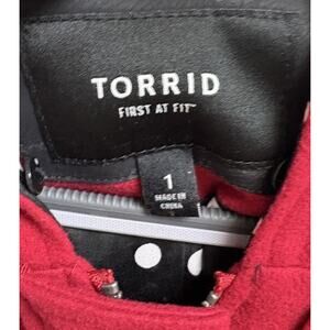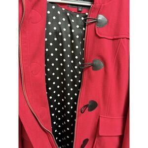 Torrid Women’s Red Toggle Hooded Coat Size 1 (14/16) Lined Polka Dot Jacket