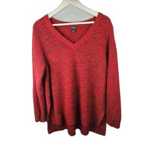 Torrid Women's Red V-Neck Marled Knit Long Sleeve Sweater Size 3 | 3X