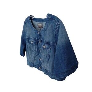 - Brand: Torrid short sleeve cropped 2 pocket button close distressed denim button close jacket