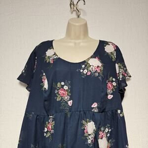 Torrid Womens Sz 1X (14-16) floral flowy Midi Dress. Absolutely mint condition with no visible indications of wear. Has almost a mock wrap style skirt with ruffles and a hi low hem line. Little longer in back than in front. Measures 22" armpit to armpit, 28" shoulder to front hem, 41" shoulder to back hem.