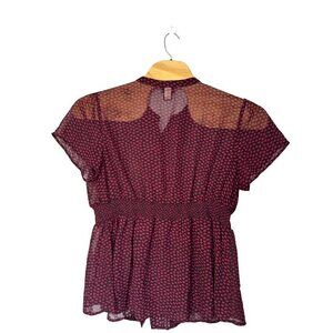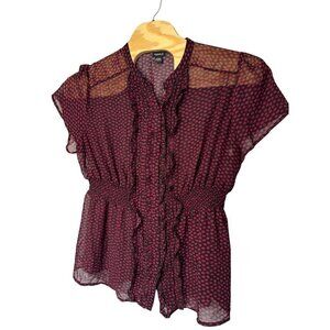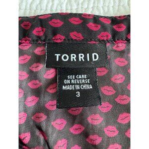 Torrid Women's Sheer Ruffled Button Down Blouse Smocking SZ 3 (22-24) Black Red