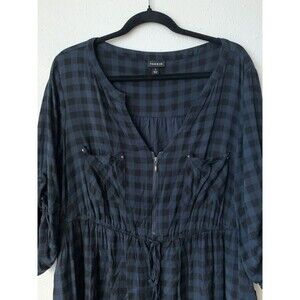 Torrid Womens Shirt Dress Blue Plaid Challis Drawstring Long Tab Sleeve Size 1X