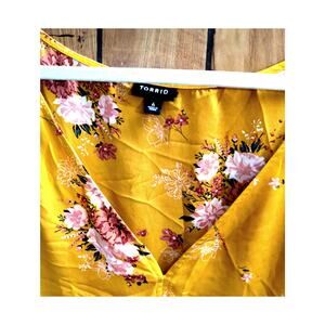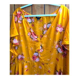 Torrid Womens Shirt Plus Size 6 6X Babydoll Top Short Sleeves Floral Gold Pink Green Tunic Blouse Lightweight