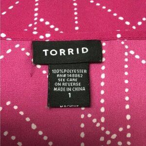 Flaunt your style with Torrid Women's Short Sleeve Georgette Keyhole Cutout Neck Blouse in pink. This size 1X blouse is perfect for casual business outings, featuring a lightweight polyester material and a geometric design.