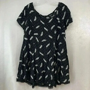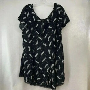 Torrid Womens Size 0 Black Feather Polka Dot Graphic Print Top Lightweight 10/12