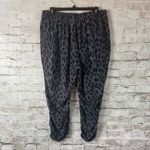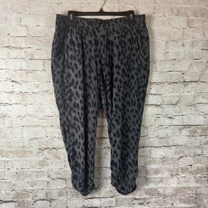 Women's Torrid Relaxed Jogger Pant Size 0 which is equal to a Large or 10-12. Black & Gray Leopard Print with Pockets and Drawstring Waist made of 100% Rayon. Gently Used. Please see pictures for details.